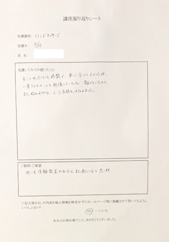 自分が以前受けて気持ち良かったから、家族や友人にやってあげたい という心優しいお二人 ご友人同士での受講でした。