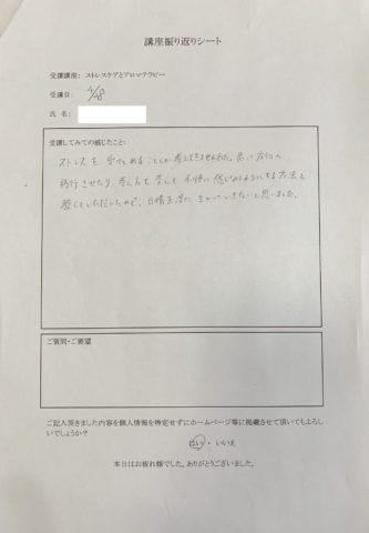 ストレスケアとアロマ 講座後感想