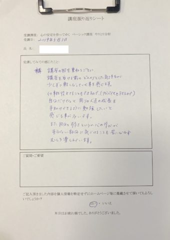 講座の回を重ねるごとに、講座を受ける前のどんよりとした気持ちが少しずつ軽くなっていく事を感じます。