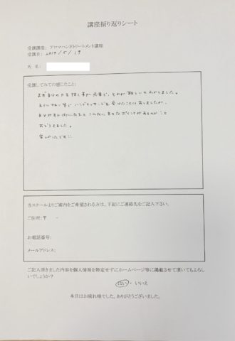 アロマハンドトリートメント 体験講座 感想
