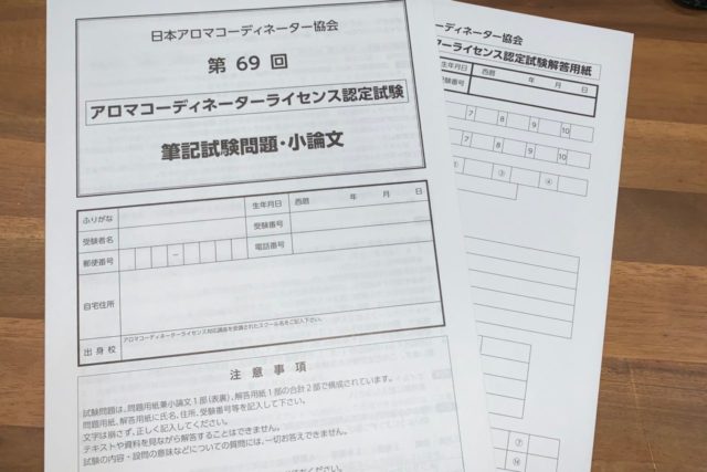 私が所属しているアロマの協会 日本アロマコーディネーター協会が認定するアロマコーディネーターの資格試験なのです。