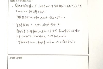 投影トレーニング 心理カウンセリング体験 講座後感想