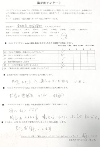 お客様の声 ~主訴:日頃のたまった疲れ、コリ~ 東大阪市
