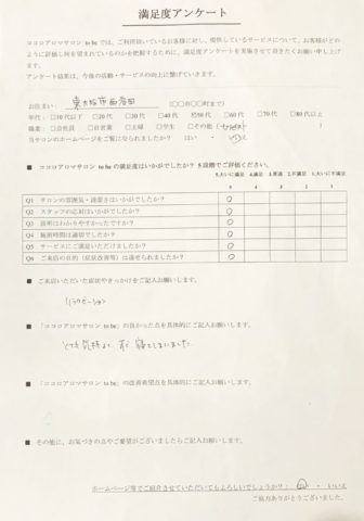 お客様の声 ~主訴:眼精疲労、ストレス~ 東大阪市