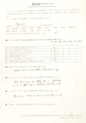 お客様の声 ~主訴:肩こり、だるさ など~ 東大阪市