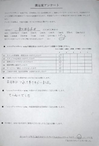●ココロアロマサロン to be の満足度はいかがでしたか?