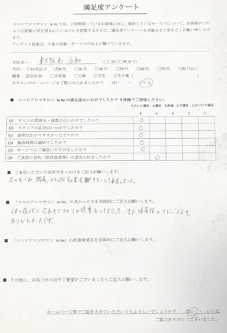 お客様の声 ~主訴:足のむくみ、腰痛、リラックス~ 東大阪市