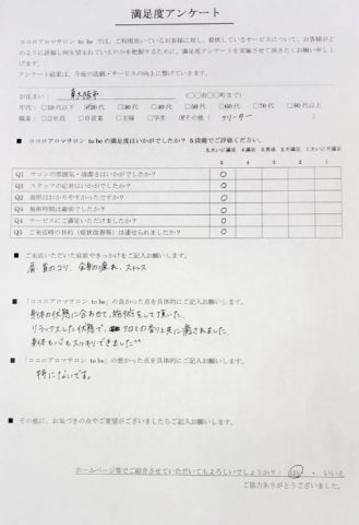 お客様の声 ~主訴:肩・首のコリ、全身の疲れ、ストレス~