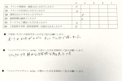お客様の声 ~主訴:肩こりやむくみ~ 東大阪市