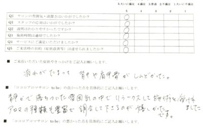 お客様の声 ~主訴:背中や肩甲骨がしんどかった~ 東大阪市