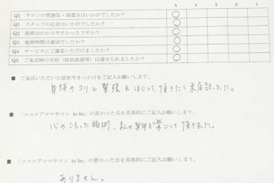 お客様の声 ~主訴:身体のコリと緊張~ 東大阪市