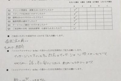 お客様の声 ~主訴:主に肩こり~ 東大阪市