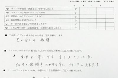 お客様の声 ~主訴:足のむくみ、疲労~